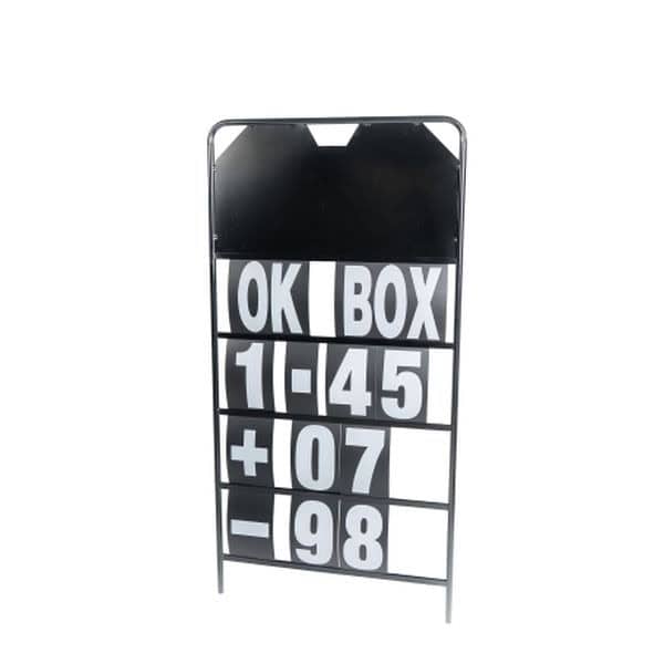Pitbord van het Spaanse topmerk ITR met witte letters en cijfers.