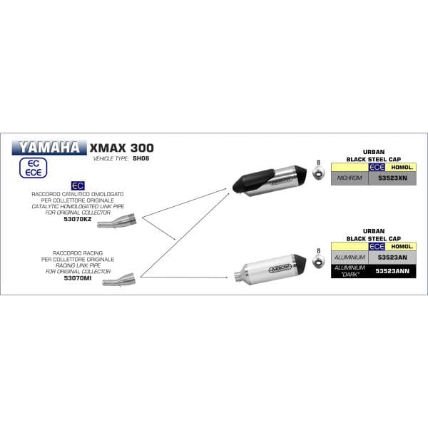 This is a black aluminum silencer with black stainless steel end cap for the Yamaha X-Max 300 2017-2020 53523ANN 53070MI.
