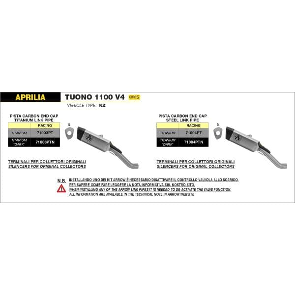 Aprilia RSV 4 1100 / Tuono V4 1100 2021+ tot heden Arrow uitlaat.