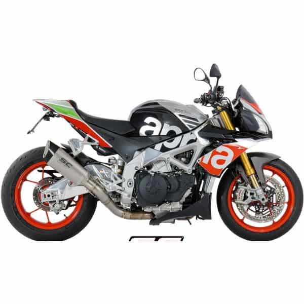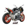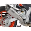 The muffler SC1-R is created and developed by the experience of the SC-Project racing department in the most important World Competitions. A look with taut and decided lines will enrich Your Aprilia Tuono V4 making it unique and exclusive. The exit pipe obtained by hydroforming and the carbon fiber end cap from the rhomboidal asymmetric shape make inimitable the silencer SC1-R. The lightweight outer body is available in both Titanium and Carbon version. The weldings with T.I.G., the sound-absorbing material resistant to very high temperatures and the insert bushings made in CNC machining embellish the SC1-R silencer. In the version with Titanium body the R&D department of SC-Project wanted to make the SC1-R more elegant by imprinting the Logo by laser, without distorting the look, while in the Carbon version, on the silencer is riveted an insert with the SC-Project logo as in the versions of our mufflers used in Competitions. In the kit are incluede the brackets to install the silencer with or witout the passenger pegs.