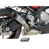 The S1 muffler represents for SC-Project the perfect combination of lightness and performance without compromise. Its conical shape with taut and essential lines make the S1 silencer fascinating giving outburst to Your BMW S 1000 RR. Born from the experience of the racing department on the circuits of the WSBK Championship, the silencer has a Titanium body with Carbon end cap with a special sound-absorbing material that resists high temperatures. To make it unique and unmistakable our Technicians have used the best production processes: brackets and fittings welded with T.I.G. technology, the insert bushings in titanium made in CNC and lasered Logo. From the high and powerful sound the S1 silencer will make the Sound of Your Moto unique. The link pipe in full titanium with T.I.G. welding is included in the kit.