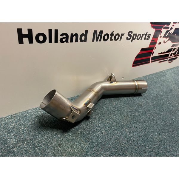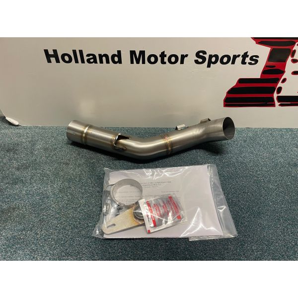 Deze link pipe past in combinatie met de originele uitlaat demper of met een uitlaat demper die ook op de originele link pipe past zoals de Arrow en Akrapovic dempers.