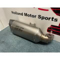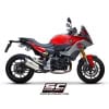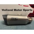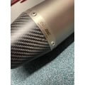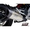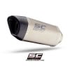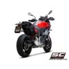The SC1-R muffler represents the maximum technological expression that can be mounted on BMW F900R and XR. Derived directly from the SBK, extreme performance and shapes made especially for your BMW. Its outlet is obtained by hydroforming in titanium, its carbon end cap is made in an autoclave and available with an external body in titanium or carbon. The welds of the bracket and the fitting are produced with T.I.G. technology, the sound-absorbing material is designed to withstand extremely high temperatures. The sound is unique. Together with the silencer, a black pre-chamber (obtained with ceramic paints resistant to very high temperatures) is provided, specifically designed to reduce the shape of the muffler as much as possible, and made to fit in the best way with the design of the motorcycle. The muffler is EURO5 approved. It comes with a specific carbon protection made in an autoclave. The muffler has a system that allows installation in two different positions: high, for a sport position, or low if the original right side bag is used. This adjustment is possible in a very simple and fast way.
