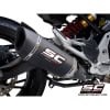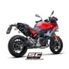 The SC1-R muffler represents the maximum technological expression that can be mounted on BMW F900R and XR. Derived directly from the SBK, extreme performance and shapes made especially for your BMW. Its outlet is obtained by hydroforming in titanium, its carbon end cap is made in an autoclave and available with an external body in titanium or carbon. The welds of the bracket and the fitting are produced with T.I.G. technology, the sound-absorbing material is designed to withstand extremely high temperatures. The sound is unique. Together with the silencer, a black pre-chamber (obtained with ceramic paints resistant to very high temperatures) is provided, specifically designed to reduce the shape of the muffler as much as possible, and made to fit in the best way with the design of the motorcycle. The muffler is EURO5 approved. It comes with a specific carbon protection made in an autoclave. The muffler has a system that allows installation in two different positions: high, for a sport position, or low if the original right side bag is used. This adjustment is possible in a very simple and fast way.