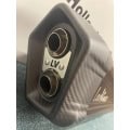 Dit is een rvs zwarte uitlaat demper met een carbon eind kap.