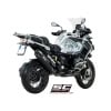The Adventure muffler was created out of the need to bring SC-Project is technology and skills into the world of maxi-enduro and Sports-Tourer, is equipped with a titanium body enriched by laser marking with a mud effect that, together with the carbon end cap, recalls the nature of Adventure. Adventure, also available in the elegant Matt Black Edition, is designed for the motorcyclist attentive to performance and look. The slender and slim line, compared to the bulky and heavy original mufflers made of sheet steel, gives it an aggressive look in addition to lightness that results in sheer riding pleasure.