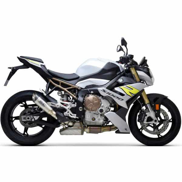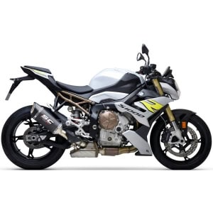 The S1 muffler represents for SC-Project the perfect combination of lightness and performance without compromise. Its conical shape with taut and essential lines make the S1 silencer fascinating giving outburst to Your BMW S 1000 R. Born from the experience of the racing department on the circuits of the WSBK Championship, the silencer has a Titanium body with Carbon end cap with a special sound-absorbing material that resists high temperatures. To make it unique and unmistakable our Technicians have used the best production processes: brackets and fittings welded with T.I.G. technology, the insert bushings in titanium made in CNC and lasered Logo. From the high and powerful sound the S1 silencer will make the Sound of Your Moto unique.