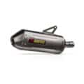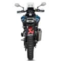 This new muffler design was developed with a special profiled surface to add durability and a sporty look, as seen in rally-raid motorbikes. Constructed with a stainless-steel link pipe and inner muffler structure, it is finished with a high-grade titanium end cap, muffler bracket, and muffler outer sleeve, with an Akrapovič logo sticker completing the look.