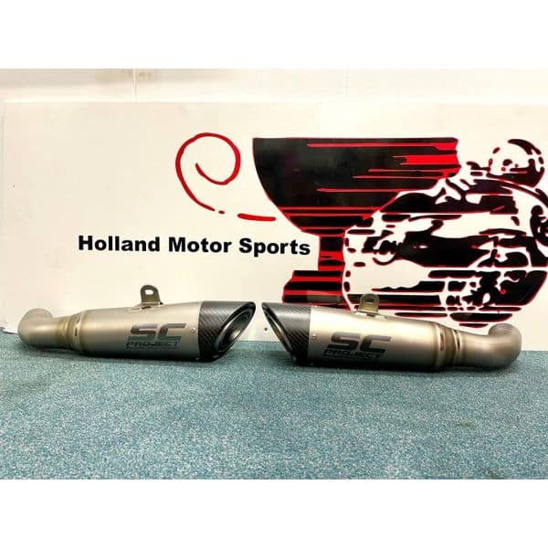 The S1 muffler represents for SC-Project the perfect combination of lightness and performance without compromise. Its conical shape with taut and essential lines make the S1 silencer fascinating giving outburst to Your Ducati Hypermotard 950. Born from the experience of the racing department on the circuits of the WSBK Championship, the silencer has a Titanium, Titanium Matt Black body with Carbon end cap with a special sound-absorbing material that resists high temperatures. The Matt Black version is obtained by ceramic-based painting resistant to very high temperatures. To make it unique and unmistakable our Technicians have used the best production processes: brackets and fittings welded with T.I.G. technology, the insert bushings in titanium made in CNC and lasered Logo. From the high and powerful sound the S1 silencer will make the Sound of Your Moto unique.