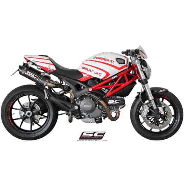 The GP-TECH muffler characterized by its round and simple shape gives a sporty and attractive line to your Ducati Monster. Symbol Racing of the SC-Project range, with design retrò, is available in Carbon. The GP-TECH is distinguished by the sporty exhaust end cap carbon fiber Twill. The visible welding with T.I.G. technology and the insert bushings made in CNC allow the silencer to be an added value to Your Motorcycle. The muffler is equipped the DB-Killer and is approved for road use. In the kit are included the steel clamps with anti-vibration rubber for to install the silencers.