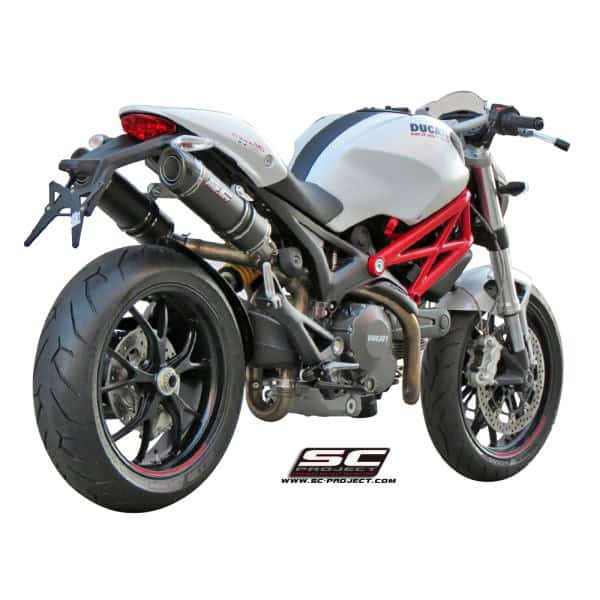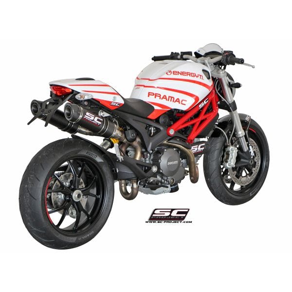 The GP-TECH muffler characterized by its round and simple shape gives a sporty and attractive line to your Ducati Monster. Symbol Racing of the SC-Project range, with design retrò, is available in Carbon. The GP-TECH is distinguished by the sporty exhaust end cap carbon fiber Twill. The visible welding with T.I.G. technology and the insert bushings made in CNC allow the silencer to be an added value to Your Motorcycle. The muffler is equipped the DB-Killer and is approved for road use. In the kit are included the steel clamps with anti-vibration rubber for to install the silencers.