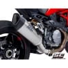 The muffler SC1-R is created and developed by the experience of the SC-Project racing department in the most important World Competitions. A look with taut and decided lines will enrich Your Ducati Monster 1200 making it unique and exclusive. The exit pipe obtained by hydroforming and the carbon fiber end cap from the rhomboidal asymmetric shape make inimitable the silencer SC1-R. The lightweight outer body is available in both Titanium version. The weldings with T.I.G., the sound-absorbing material resistant to very high temperatures and the insert bushings made in CNC machining embellish the SC1-R silencer. In the version with Titanium body the R&D department of SC-Project wanted to make the SC1-R more elegant by imprinting the Logo by laser, without distorting the look. In the kit is included the link pipe with T.I.G. welding with catalyst and the carbon heat protection.