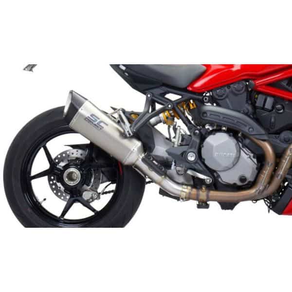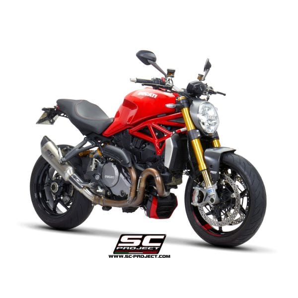 The muffler SC1-R is created and developed by the experience of the SC-Project racing department in the most important World Competitions. A look with taut and decided lines will enrich Your Ducati Monster 1200 making it unique and exclusive. The exit pipe obtained by hydroforming and the carbon fiber end cap from the rhomboidal asymmetric shape make inimitable the silencer SC1-R. The lightweight outer body is available in both Titanium version. The weldings with T.I.G., the sound-absorbing material resistant to very high temperatures and the insert bushings made in CNC machining embellish the SC1-R silencer. In the version with Titanium body the R&D department of SC-Project wanted to make the SC1-R more elegant by imprinting the Logo by laser, without distorting the look. In the kit is included the link pipe with T.I.G. welding with catalyst and the carbon heat protection.