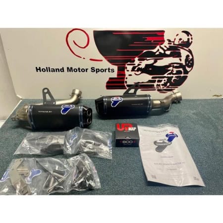 Titanium Works silencers (right and left) with stainless steel link pipies