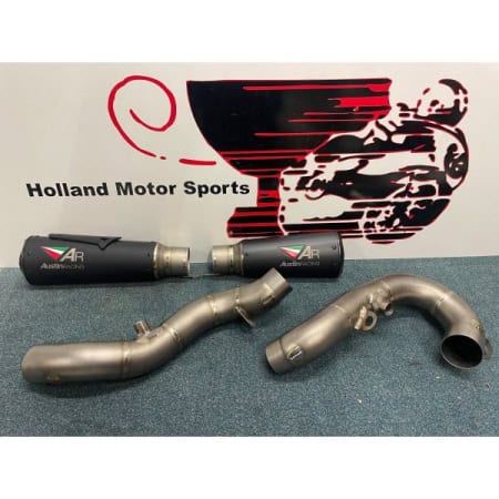 Door de meegeleverde titanium link pipes komen de dempers op de originele voorbochten. Hierdoor komt de originele katalysator te vervallen.