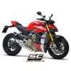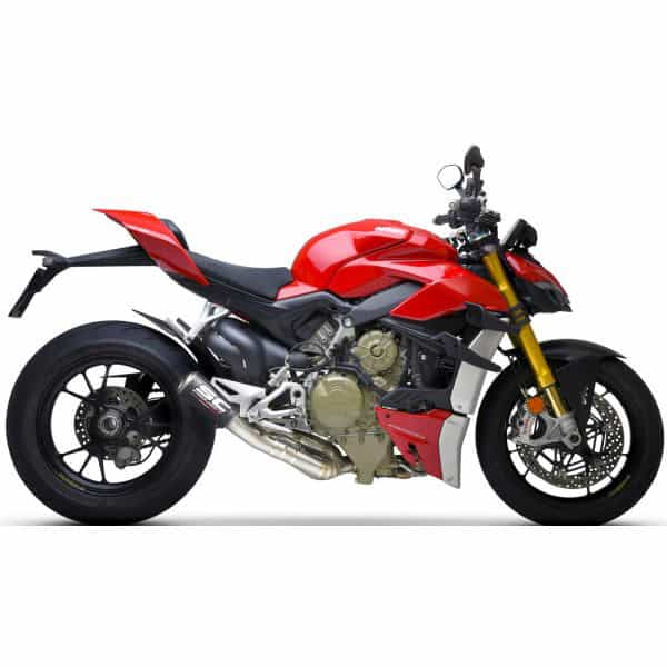 SC-Project, with the aim of improving performance and aesthetics of the Your Ducati Streetfighter V4 has created the semi-complete 2-1 system exhaust showcases first-class technical solutions. To create a unique sound we used the CR-T M2 muffler derived from experience of the World Championships Moto 2. The external body in high temperature resistant carbon fiber with titanium mesh stone guard, the titanium end caps welded with T.I.G. and the titanium insert bushings machined from solid by CNC machinery, which guarantee flawless couplings, have been tested in Moto2 World Championship. Deep and powerful sound, without compromise. In the kit is included the titanium link pipe with T.I.G. welding in section to guarantee the best performance, all the small parts and the bracket for plug and play assembly. For perfect performance, throttle response and durability, ECU remapping is recommended. The best performance with the best design for the Ducati Streetfighter V4.