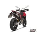 The kit includes two carbon fibre heat shields (for left and right side), designed to be perfectly integrated with the tail of the Ducati Hypermotard 698 Mono. The silencer’s body is enriched by an exclusive aluminium plate with SC-Project logo, just like the exhaust systems of SC-Project Reparto Corse.