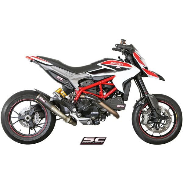 The CR-T muffler is the the unmistakable signature of the Racing style of SC-Project. Multiple Moto2 World Champion was created to satisfy the best Teams and Riders. Designed and developed to give a sporty and racing character to your Ducati with a deep and dark Sound is unique in the aftermarket silencer panorama. The iconic muffler is available in variant Carbon. To achieve the best performance the CR-T is built with materials derived from the aeronautical industry, such as Carbon fiber with dedicated treatment to withstand the highest temperatures. Bracket welding and fitting with T.I.G. technology. The insert bushings are machined from solid by CNC machines, wich guarantee impeccable couplings. In the kit is included the carbon fiber clamp.