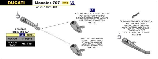 Arrow uitlaat voor de Ducati Monster 797 2017 – 2018