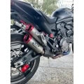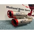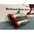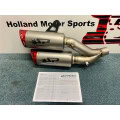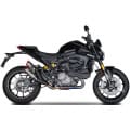 Dit is een zeer lichte slip-on volledig uit titanium, vermindert het gewicht met 1 kg ten opzichte van de originele uitlaat. Bovendien maakt de slip-on door het design van de uitlaat, een toename van 2 pk mogelijk met de Euro5-goedgekeurde versie, zonder enige andere wijziging aan de motor.