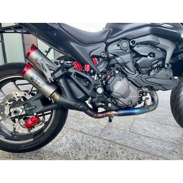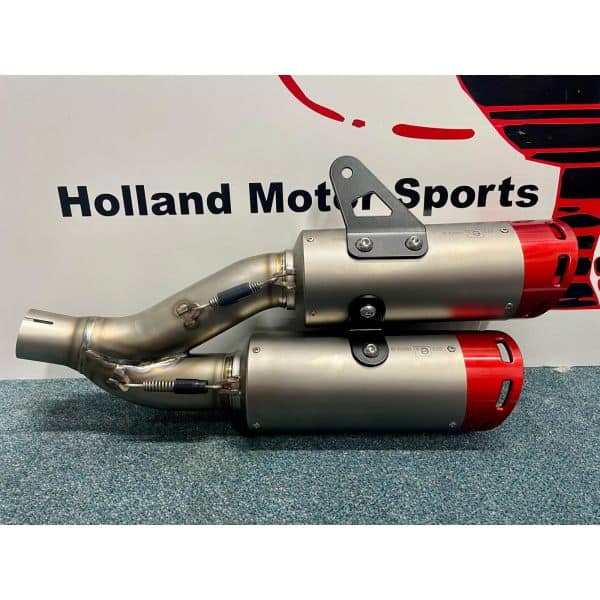Dit is een zeer lichte slip-on volledig uit titanium, vermindert het gewicht met 1 kg ten opzichte van de originele uitlaat. Bovendien maakt de slip-on door het design van de uitlaat, een toename van 2 pk mogelijk met de Euro5-goedgekeurde versie, zonder enige andere wijziging aan de motor.
