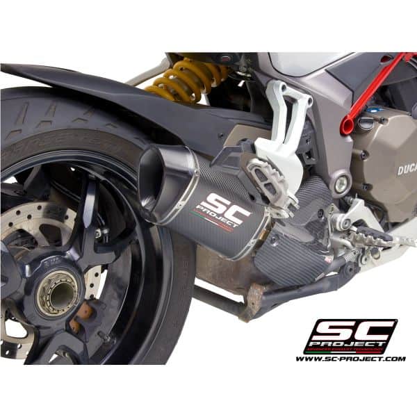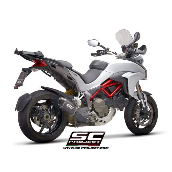 SC-Project has managed to gather performance, style and globetrotters in MTR muffler. The new MTR muffler (Multiple Road) fits perfectly to your Ducati Multistrada 1200. Thanks to the new endcap made entirely from full Anticorodal aluminium with CNC machines, the style of the muffler becomes unique and ddistinct. The outside manufacturing of the endcap has been handled by SC-Project R&D department in order to obtain high-quality surfaces and finishes. They gave lots of attention also for the inside manufacturing, made for lightening the more they can the endcap’s weight. The endcap’s colour is obtained thanks to the high-temperature resistant anodic oxidation that helps to preserve it. The colour used for the muffler is called “Black Pearl”. The muffler is EURO4 homologated. In the kit is included the external body in Carbon and the carbon heat protection.