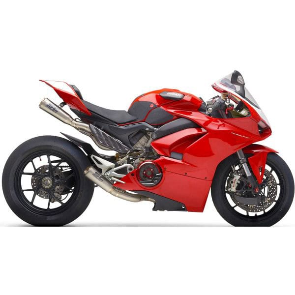 The SC-Project full system exhaust is the direct result of the research, development and design work carried out by the R&D department together with the major MotoGP and SBK World Championship Teams. SC-Project, with the aim of improving performance and aesthetics of the Your Ducati Panigale V4 has created a complete unit designed to house the original lambda probe, showcases first-class technical solutions: the use of CNC machined bushings turned from solid allow the exhaust system impeccable coupling that make fitting easier and improve system performance; the implementation of a lighter system ensures better bike rideability. The production of pipes of variable dimensions guarantees a marked increase in performance both in terms of torque and maximum power through the entire bend.