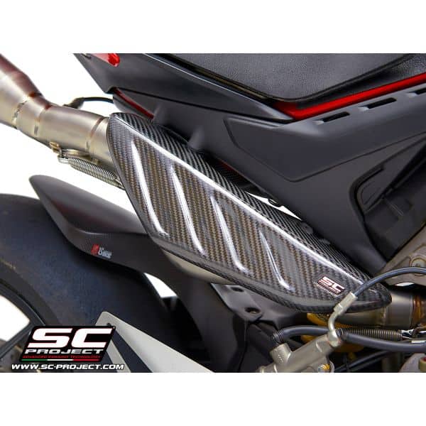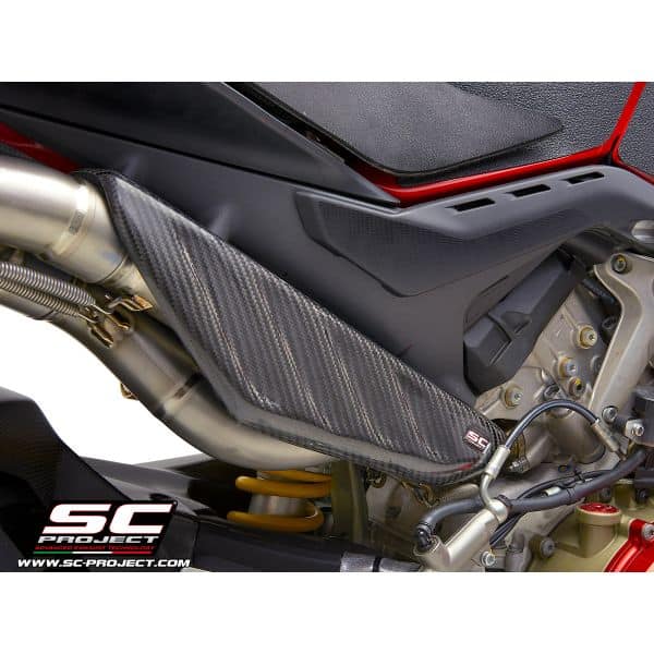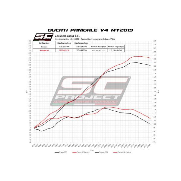 The SC-Project full system exhaust is the direct result of the research, development and design work carried out by the R&D department together with the major MotoGP and SBK World Championship Teams. SC-Project, with the aim of improving performance and aesthetics of the Your Ducati Panigale V4 has created a complete unit designed to house the original lambda probe, showcases first-class technical solutions: the use of CNC machined bushings turned from solid allow the exhaust system impeccable coupling that make fitting easier and improve system performance; the implementation of a lighter system ensures better bike rideability. The production of pipes of variable dimensions guarantees a marked increase in performance both in terms of torque and maximum power through the entire bend.