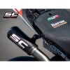 The full titanium 4-2-1-2 full exhaust system with double CR-T M2 for the new Ducati Panigale V4 derives directly from the experience by the SC-Project Racing Department in the WSBK World Championship. No compromise, maximum performance. For its realization we have used the best technologies. The four head attachments have the flanges completely machined from solid by CNC machining. The male and female bushings  are made of CNC machined titanium, in order to guarantee the best fit. The bushings also have a special treatment that protects against oxidation and reduces friction and allowing longer life to the hardest stresses. The complete is built entirely in reduced thickness titanium, with Tig welding performed in a controlled environment. It is supplied with lambda probe connections. The mounting springs have metal covers (no in rubber) to withstand the maximum stresses. The complete is supplied with the high resistance carbon mufflers model CR-T M2 with titanium mesh stone guard. A large autoclave machined carbon protection with a titanium insert is also provided. The kit includes all the small parts, the brackets for a plug and play assembly. The exhaust system is compatible with both 1100 and 1000 cc versions. For perfect performance, re-mapping of the ECU is recommended. The best performance with the best design for your Ducati Panigale V4.