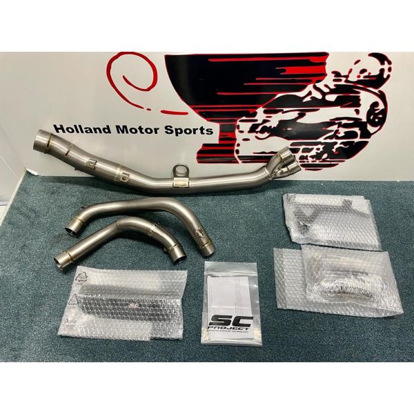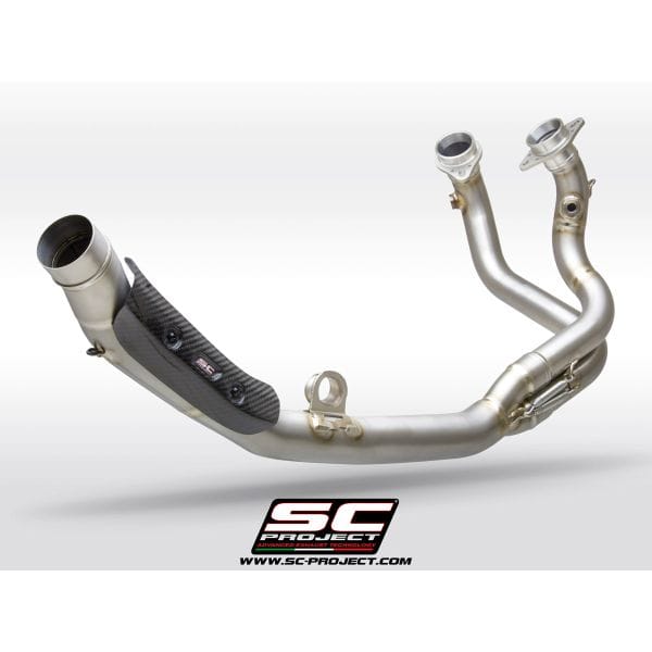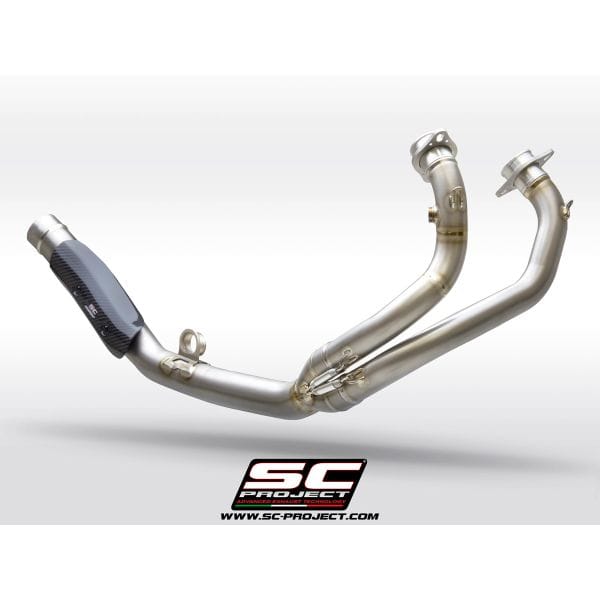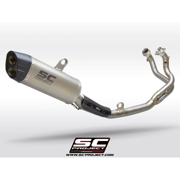 The SC-Project complete full system exhaust is the direct result of the research, development and design work started by the Racing Department directly for your Honda Africa Twin 1100. The SC-Project technicians, to improving the performance and aesthetics of the vehicle as standard, they have created a complete FULL TITANIUM unit designed to house the original lambda probes, which presents first-rate technical solutions: the use of turned bushings machined from solid titanium and CNC machined give the exhaust system impeccable couplings that they make assembly easier and improve the performance of the complete; the creation of fittings of variable dimensions guarantees a strong performance increase both in terms of torque and maximum power; the removal of the original catalyst allows an important reduction of the operating temperature as well as giving a dark and deep sound, a real hallmark of the SC-Project range, for your Honda Africa Twin 1100. Performance without compromise!