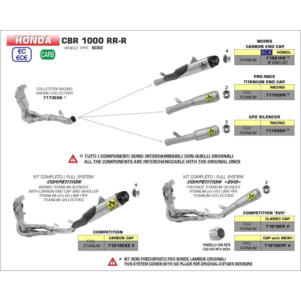 Honda CBR 1000 RR-R 2020-2023 Arrow rvs racing bochten 71736MI