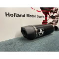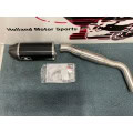 De demper past door de rvs link pipe op de originele uitlaatbochten of op de Arrow uitlaatbochten.