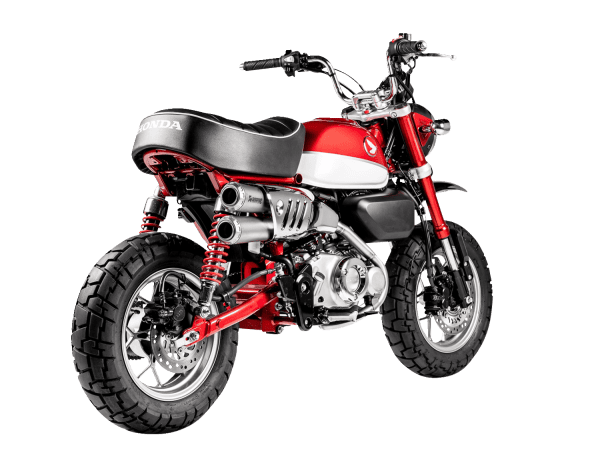 This beautifully shaped exhaust perfectly matches the Monkey’s unique character. The twin conical mufflers are constructed from stainless steel, featuring muffler sleeves in titanium, a race-proven material. The exhaust system offers power gains through the entire rpm range and reduced weight, and it delivers a deep, rewarding sound. The sporty but classic appearance can be further enhanced by adding the specially designed carbon-fibre heat shield. An optional header in stainless steel is available for an upgrade to a full system.