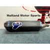 Dit is een zwarte titanium demper met een carbon end cap en Europese goedkeuring.