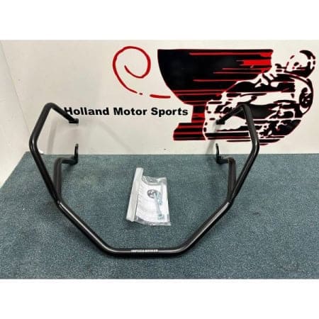 Deze Hepco&Becker valbeugel is speciaal ontworpen om de voorzijde van de motor te beschermen bij omvallen of een schuivertje. Denk hierbij aan de koplamp, stuur en hendels.