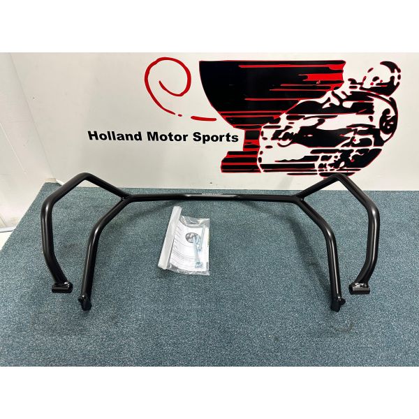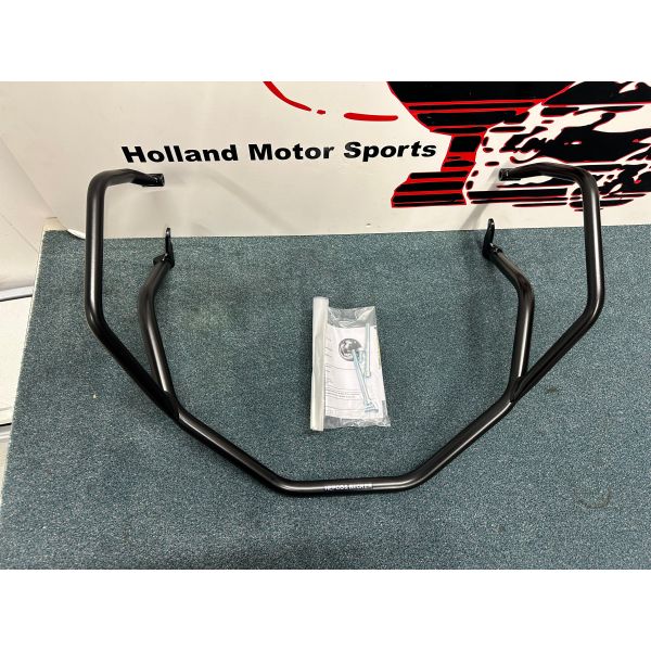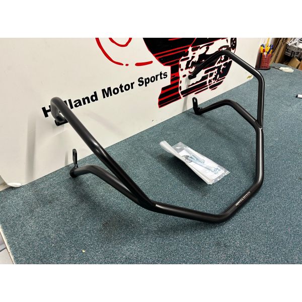 Deze Hepco&Becker valbeugel is speciaal ontworpen om de voorzijde van de motor te beschermen bij omvallen of een schuivertje. Denk hierbij aan de koplamp, stuur en hendels.