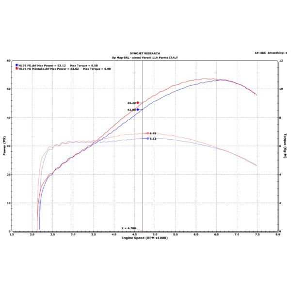 Increased power and torque after installing the MIntake kit +2,4CV and 0,4Kg-M