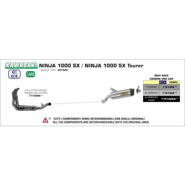 Arrow uitlaat voor de Kawasaki Ninja 1000 SX en SX Tourer 2020 tot heden.