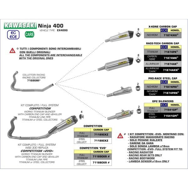 Bochtensysteem van Arrow voor de Kawasaki Ninja 400 2018 – 2022