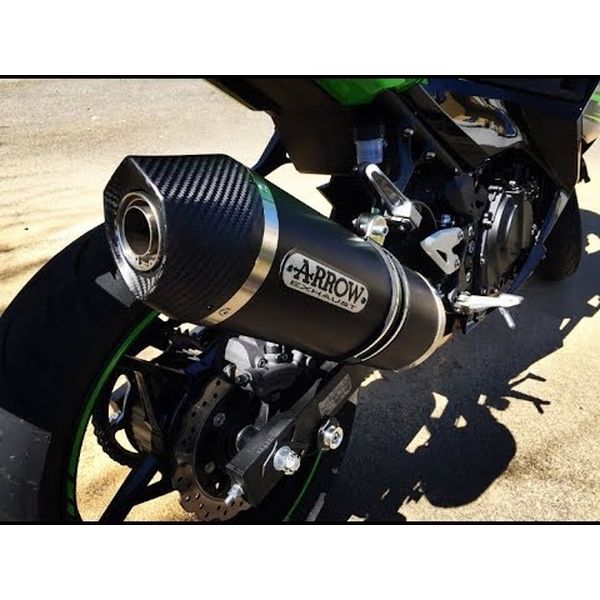 De Aluminium dark race-tech demper en heeft een carbon end cap is EU goedgekeurd én heeft een uitneembare dB killer. Past op zowel de Arrow bochten als op de originele.