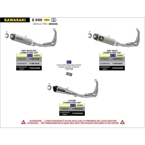 Kawasaki Z 650 en Ninja 650 2021-2023 Arrow uitlaatsysteem.