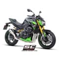 If you want the best in performance and lightness for your Kawasaki Z900, you have to choose the full system.The complete SC-Project groupset is the direct result of the research, development and design work started by the in-house R&D department together with the major MotoGP and SBK championship teams. It is available in full titanium or AISI 304 stainless steel versions – compatible with the entire range of slip-on mufflers dedicated to the motorcycle for which it was designed. The SC-Project full system is designed to house the original lambda sensor. The removal of the original catalytic converter allows an important reduction of the operating temperature as well as giving a deep and gloomy sound to your Z900, the true distinctive mark of the SC-Project range.