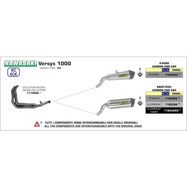 Arrow uitlaat voor de Kawasaki Versys 1000 en Versys 1000 SE vanaf 2019- tot heden.