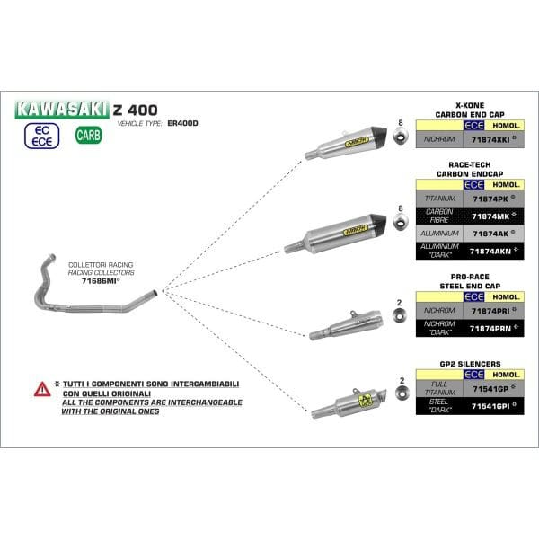 Het systeem is niet EU goedgekeurd. De 71686MI past op zowel de Arrow dempers als op de originele demper.