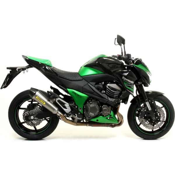 Uitlaatsysteem van het Italiaanse top merk Arrow voor de Kawasaki Z 800 2013 tot 2016.