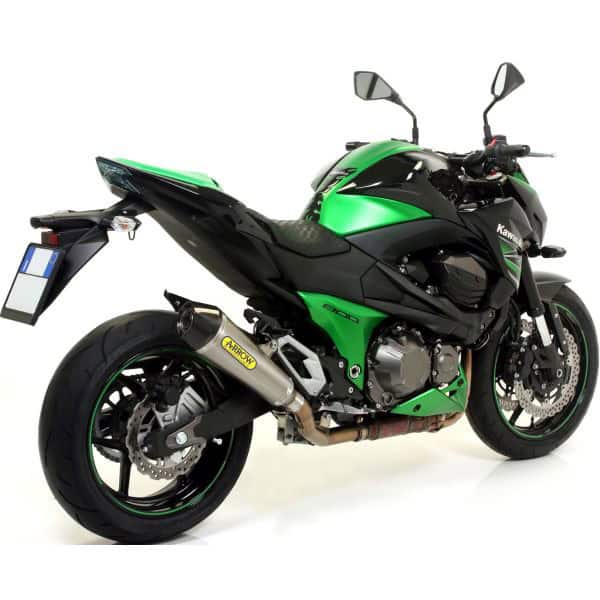 Uitlaatsysteem van het Italiaanse top merk Arrow voor de Kawasaki Z 800 2013 tot 2016.