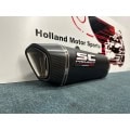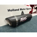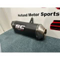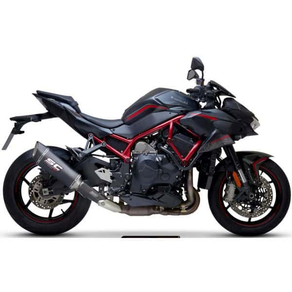 The muffler SC1-R is created and developed by the experience of the SC-Project racing department in the most important World Competitions. A look with taut and decided lines will enrich Your Kawasaki Z H02 making it unique and exclusive. The exit pipe obtained by hydroforming and the carbon fiber end cap from the rhomboidal asymmetric shape make inimitable the silencer SC1-R. The lightweight outer body is available in both Titanium and Carbon version. The weldings with T.I.G., the sound-absorbing material resistant to very high temperatures and the insert bushings made in CNC machining embellish the SC1-R silencer. In the version with Titanium body the R&D department of SC-Project wanted to make the SC1-R more elegant by imprinting the Logo by laser, without distorting the look, while in the Carbon version, on the silencer is riveted an insert with the SC-Project logo as in the versions of our mufflers used in Competitions. In the kit is included the carbon heat protection.