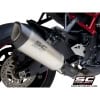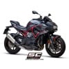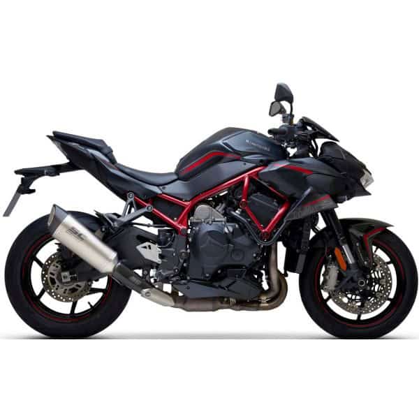 The muffler SC1-R is created and developed by the experience of the SC-Project racing department in the most important World Competitions. A look with taut and decided lines will enrich Your Kawasaki Z H02 making it unique and exclusive. The exit pipe obtained by hydroforming and the carbon fiber end cap from the rhomboidal asymmetric shape make inimitable the silencer SC1-R. The lightweight outer body is available in both Titanium and Carbon version. The weldings with T.I.G., the sound-absorbing material resistant to very high temperatures and the insert bushings made in CNC machining embellish the SC1-R silencer. In the version with Titanium body the R&D department of SC-Project wanted to make the SC1-R more elegant by imprinting the Logo by laser, without distorting the look, while in the Carbon version, on the silencer is riveted an insert with the SC-Project logo as in the versions of our mufflers used in Competitions. In the kit is included the carbon heat protection.