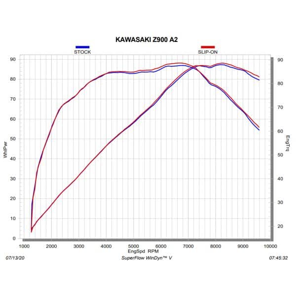 This beautifully designed exhaust has a more compact shape to fit with the bike’s naked and sporty appearance. It is constructed using hand-crafted carbon fibre parts and finished with an end-cap in the same perfectly finished race-proven material. Power and torque increases throughout the range and a weight savings over the stock system all add to improved performance. It serves up an enriched tone for added aural enjoyment and is EC/ECE type approved. Easy-to-follow plug-and-play instructions with no remapping makes this a simple upgrade to improve the Z900 A2.