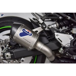 The CR-T muffler, the multiple MotoGP and Moto2 World Champion, makes the Kawasaki Z900 more aggressive than ever. Its racing look, aeronautical-derived materials such as titanium and carbon fibre, Bracket and fitting welds with T.I.G. technology and insert bushings machined from solid by CNC machines, make it the best on the market for your Kawasaki.The titanium flame breaker mesh, born from the racing experience, makes the silencer of your Z900 even more precious. The sound is as extreme as possible. The silencer is EURO4 approved. Available with an external body in both carbon and titanium and with a large carbon protection made in autoclave, which completely takes the place of the original.